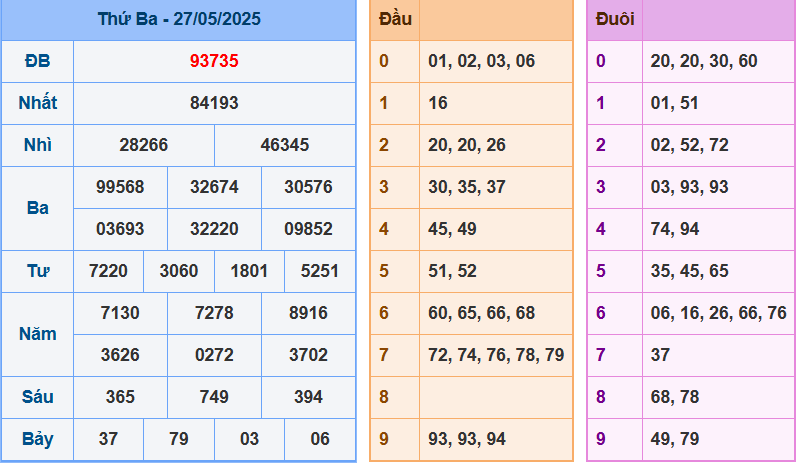 Bảng thống kê phân tích XSMB ngày 27-5-2025 hôm trước